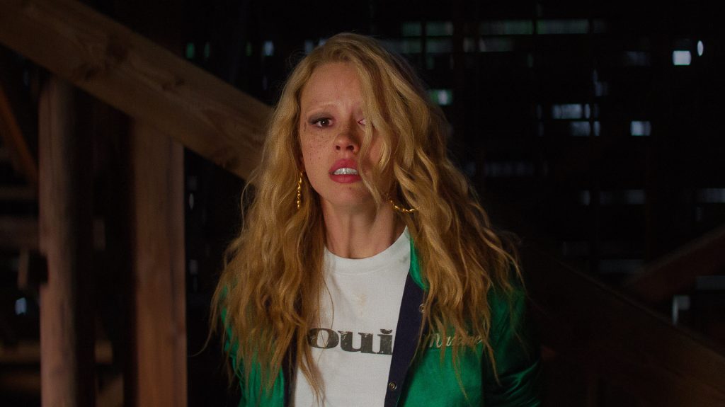 All this makes sense when it comes to Maxine snapping and turning into a classic scream queen, like she does at the end of X. And that kind of snap is one that can only be put back together with gum and tape. Based on how Maxine operates in this movie, she’s still deeply holding on to the trauma of what’s happened to her, both at the hands of her father and the old couple on the farm. Thus, Goth is the best she’s been in the trilogy outside the final shot of Pearl, despite a somewhat tired trope of the dangerous trappings of pursuing fame. She has a confidence that has built upon itself in each movie, and this time around, she’s buttressed by some certified Hollywood stars. Kevin Bacon plays a private detective hired by a mysterious client to track down Maxine, and with his mustache, gold teeth, and accent, he really hams it up. Giancarlo Esposito is finally given a chance to play someone other than Gus Fring, and while he still has ever so slightly the hints of the cold, disaffected criminal, he’s a lot of fun as Maxine’s eccentric agent who got her into a real Hollywood movie. Elizabeth Debicki is the director of The Puritan II, and her character takes herself very seriously (but you have to in her position) — she gives the best performance in the movie outside Goth. Though, the duo of Bobby Cannavale and Michelle Monaghan sure give Debicki a run for her money, as the police detectives investigating the Night Stalker. Cannavale’s cop, a former wannabe actor himself, brings a good bit of lightheartedness that adds to the already apparent sense of fun and joy, despite the film’s grim backdrop.