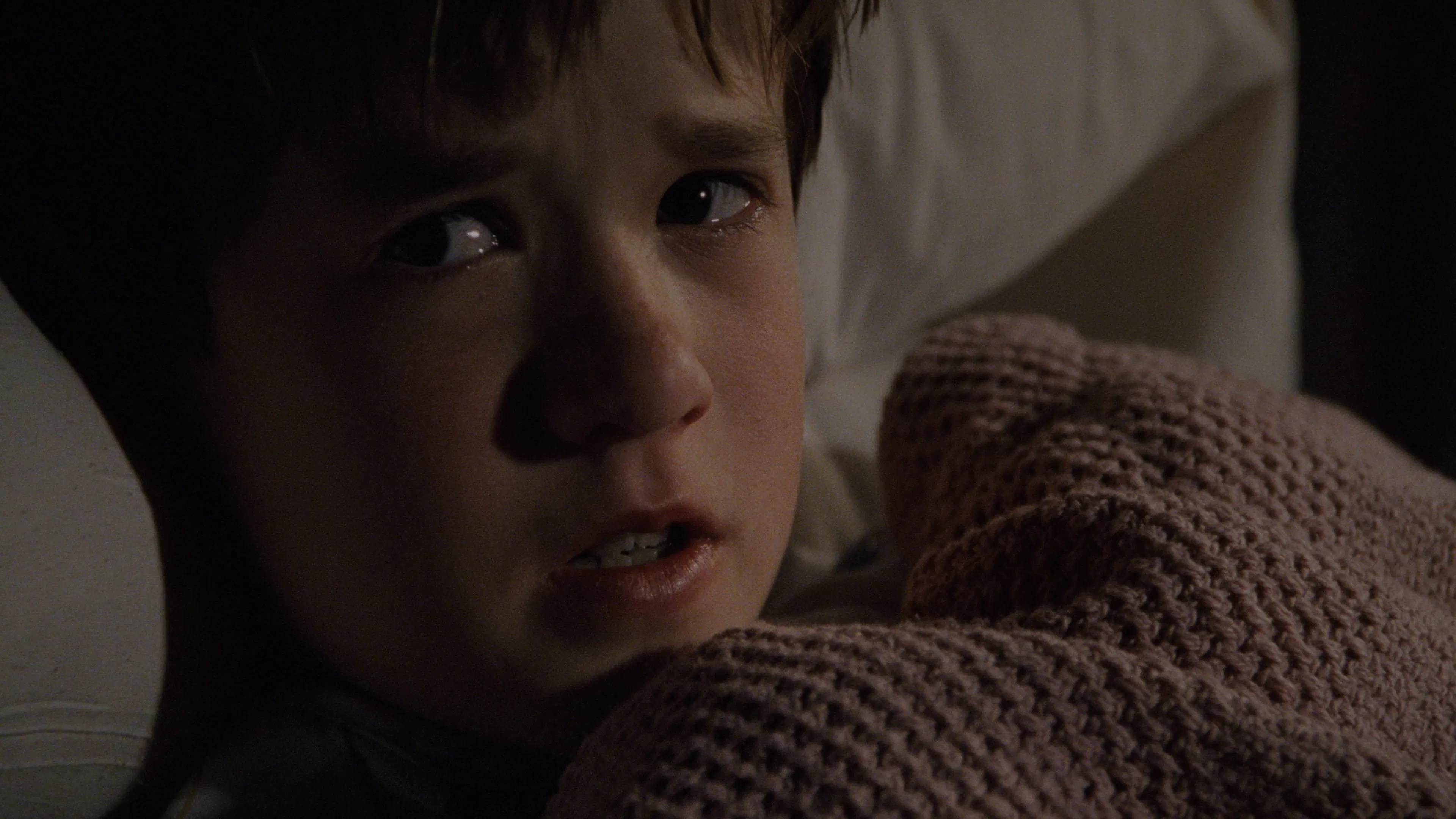 There are plenty of great close-ups for emotionally driven character moments throughout; there is no denying that. But the most important close-ups do great service to the narrative as a whole, as well as improving the efficacy of the impressive twists. Symbolism is so essential to the effectiveness and depth of The Sixth Sense, as red and green are used to express the supernatural elements of the story (which give way to the final and emotional revelation at the end of the film). You will have a close-up shot of a red doorknob that strategically obscures the other evidence around the knob. Shyamalan is like a cinematic magician who will distract and obscure while revealing the truth at the perfect time – all while preserving rewatch value. You see a close-up of the picture of Cole (Haley Joel Osment) and his mother, where she notices a strange light refraction next to them. This ethereal presence is significant to the journey that her son, Dr. Malcolm (Bruce Willis), and the audience embark upon. A close-up of a thermostat lowering signifies that a ghost will be coming. The close-up of the tape recording of one of Dr. Malcolm’s sessions, where you can hear ghosts, forces the audience to be stuck with this haunting moment. The impact of the close-up of Malcolm’s ring on the floor at the end hints at the shocking revelation that has become the film’s lasting cultural impact.